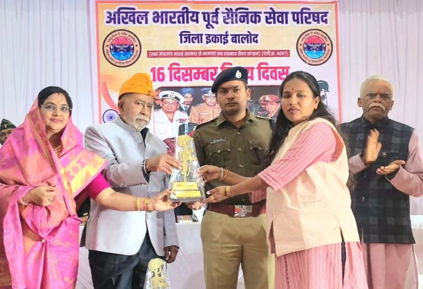 बालोद:- 1971 का विजय दिवस केवल एक तारीख नहीं, बल्कि भारतीय इतिहास का वह स्वर्णिम अध्याय है, जिसने विश्व को भारत की सैन्य शक्ति, रणनीतिक कौशल और अदम्य साहस का परिचय कराया। इसी गौरवशाली स्मृति को जन-जन तक जीवंत करने के उद्देश्य से अखिल भारतीय पूर्व सैनिक सेवा परिषद, जिला बालोद (छत्तीसगढ़) द्वारा मंगलवार को विजय दिवस का भव्य और जोशीला आयोजन किया गया। यह कार्यक्रम केवल एक औपचारिक आयोजन नहीं था, बल्कि राष्ट्रभक्ति, बलिदान और सम्मान की जीवंत अभिव्यक्ति बनकर उभरा।कार्यक्रम की शुरुआत देशभक्ति से ओत-प्रोत विद्यालयीन छात्राओं की विशाल रैली से हुई, जिसमें लगभग 300 छात्राओं ने अनुशासनबद्ध रूप से भाग लिया। हाथों में तिरंगा, होठों पर देशभक्ति के नारे और आंखों में राष्ट्र के प्रति गर्व—यह दृश्य स्वयं में प्रेरणा का स्रोत था। रैली घड़ी चौक से प्रारंभ होकर सदर बाजार, मधु चौक होते हुए जय स्तंभ चौक पहुंची, जहां रीत परेड के माध्यम से भारत माता के लिए अपना सर्वस्व अर्पित करने वाले अमर शहीदों को भावभीनी श्रद्धांजलि दी गई। यह क्षण हर उपस्थित नागरिक के हृदय को राष्ट्रप्रेम से भर देने वाला था।मंचीय कार्यक्रम का शुभारंभ दीप प्रज्वलन एवं वीर योद्धाओं को नमन के साथ हुआ। इस अवसर पर बालोद जिले के शहीद परिवारों का सम्मान कर यह संदेश दिया गया कि राष्ट्र अपने वीरों और उनके परिवारों को कभी नहीं भूलता। साथ ही नगर सेना में नव चयनित महिला अभ्यर्थियों को प्रशस्ति पत्र प्रदान कर उनके साहस और समर्पण को सम्मानित किया गया, जो नारी शक्ति के बढ़ते आत्मविश्वास का प्रतीक बना।कार्यक्रम की विशेष गरिमा तब और बढ़ गई जब अखिल भारतीय पूर्व सैनिक सेवा परिषद द्वारा विभिन्न क्षेत्रों में उत्कृष्ट योगदान देने वाले व्यक्तित्वों को सम्मानित किया गया।शिक्षा के क्षेत्र में देवेन्द्र डड़सेना को बालोद गौरव अलंकरण,पर्यावरण संरक्षण के लिए एमंत साहू,खेल जगत में किशोर नाथ योगी, सामाजिक सेवा में कोमल कुमार साहू निर्भीक एवं प्रखर पत्रकारिता के लिए